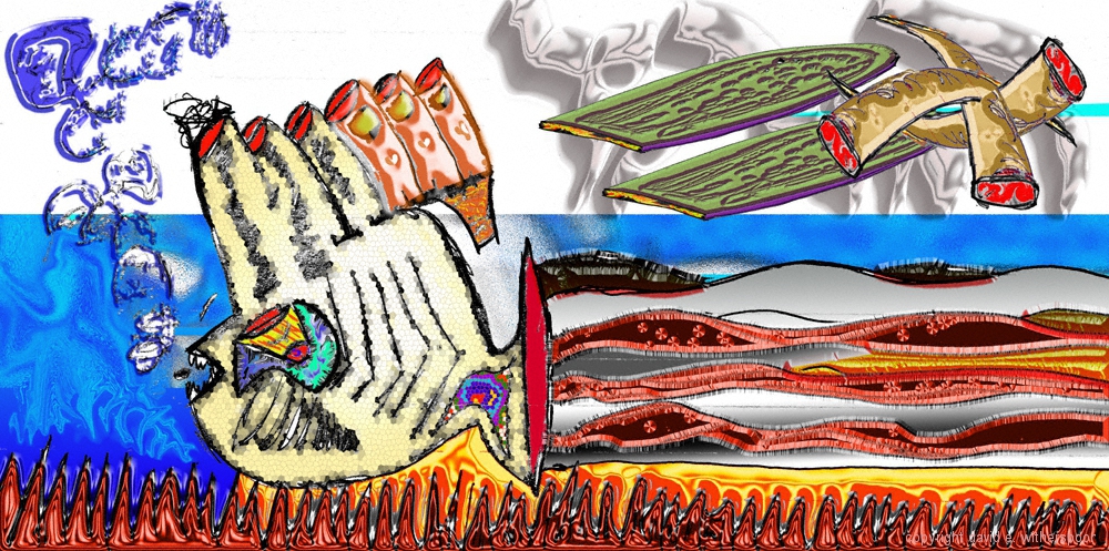 pencil, pen, and computer generated drawing: printed on canvas sizes variable